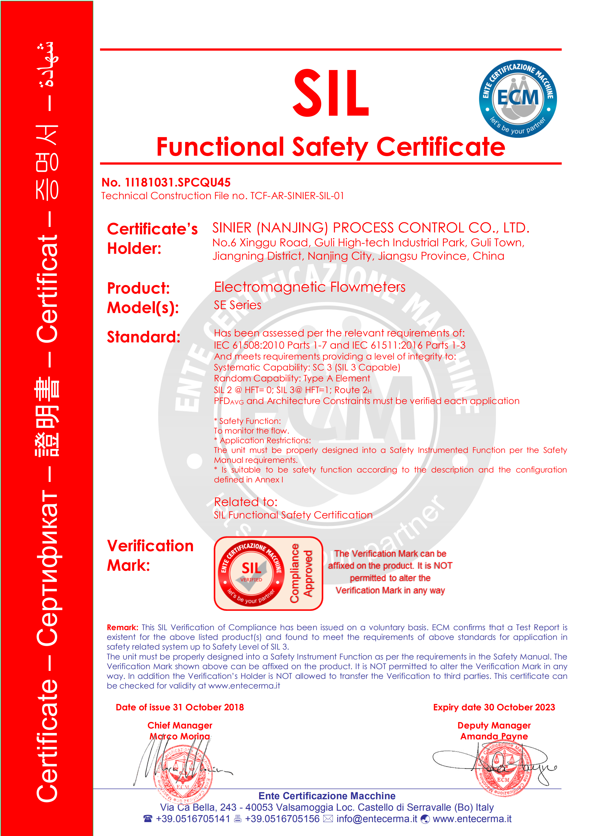 SIL證書-電磁